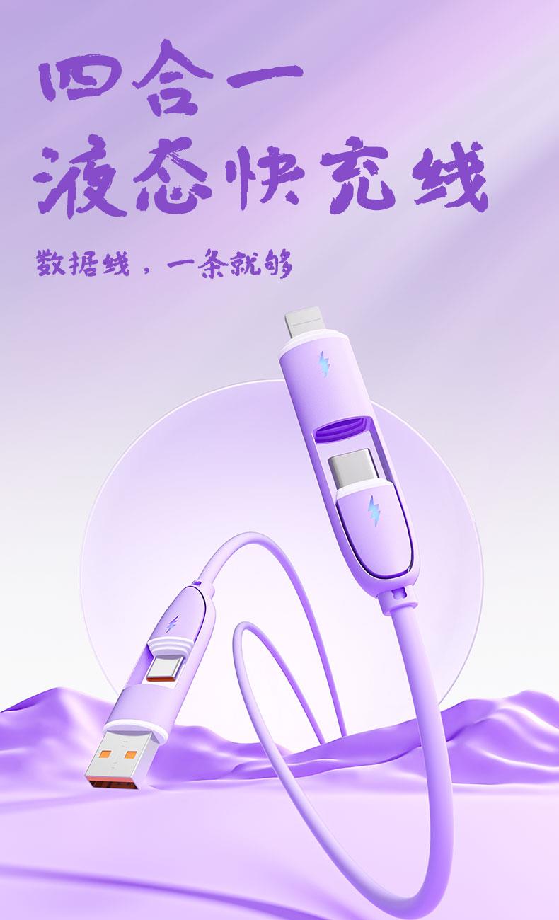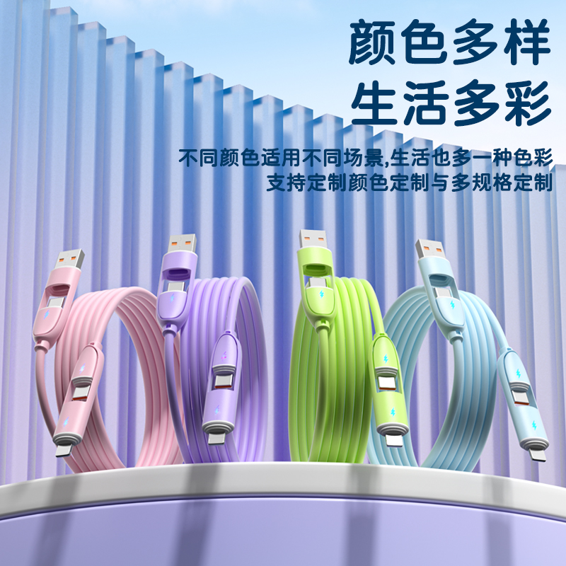 奧蘇米S62四合一66W超級(jí)快充硅膠數(shù)據(jù)線 奧蘇米S62四合一66W超級(jí)快充硅膠數(shù)據(jù)線